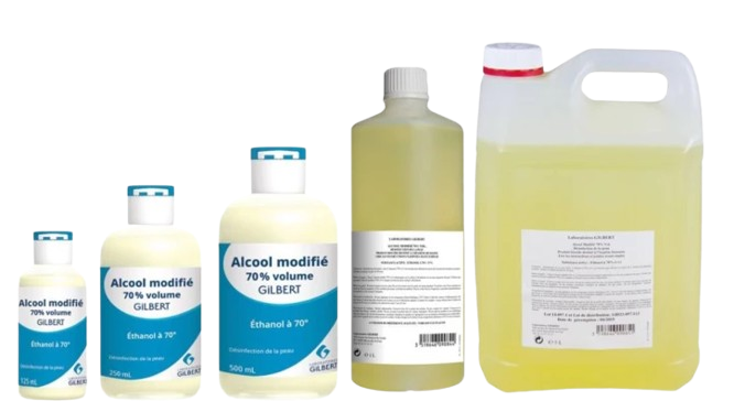 Semplificate le vostre routine di disinfezione con l'alcol modificato al 70% di Laboratoires Gilbert.