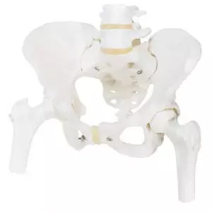 La struttura ossea del bacino femminile è differente da quella maschile a causa dello spazione di cui la femmina ha bisogno per la ricezione di un feto. Questo modello di bacino femminile in tessuto R10072 Erler Zimmer, è stato creato con un tissuto flessibile ed estetico per dimostrare come le diverse forme del bacino influenzano la gravidanza e il parto.