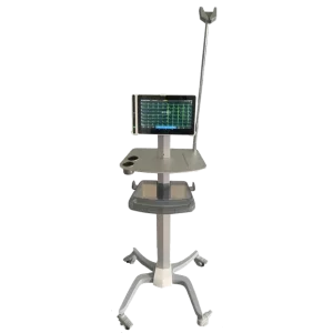 Dotato di ruote silenziose adattate alle strutture mediche, il carrello si muove facilmente preservando la tranquillità dei locali. Ogni ruota è dotata di un freno che garantisce una stabilità ottimale durante l'uso. Il cestino integrato consente di tenere a portata di mano cavi, accessori e documenti essenziali, assicurando che la postazione di lavoro sia sempre organizzata.