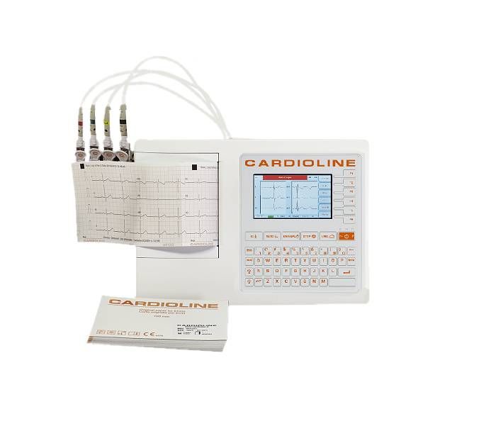 Descrizione della confezione ECG Cardioline 100S (6 derivazioni) con interpretazione + borsa + carta + elettrodi