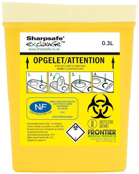 Descrizione Contenitore aghi e siringhe Sharpsafe 0,3 L
