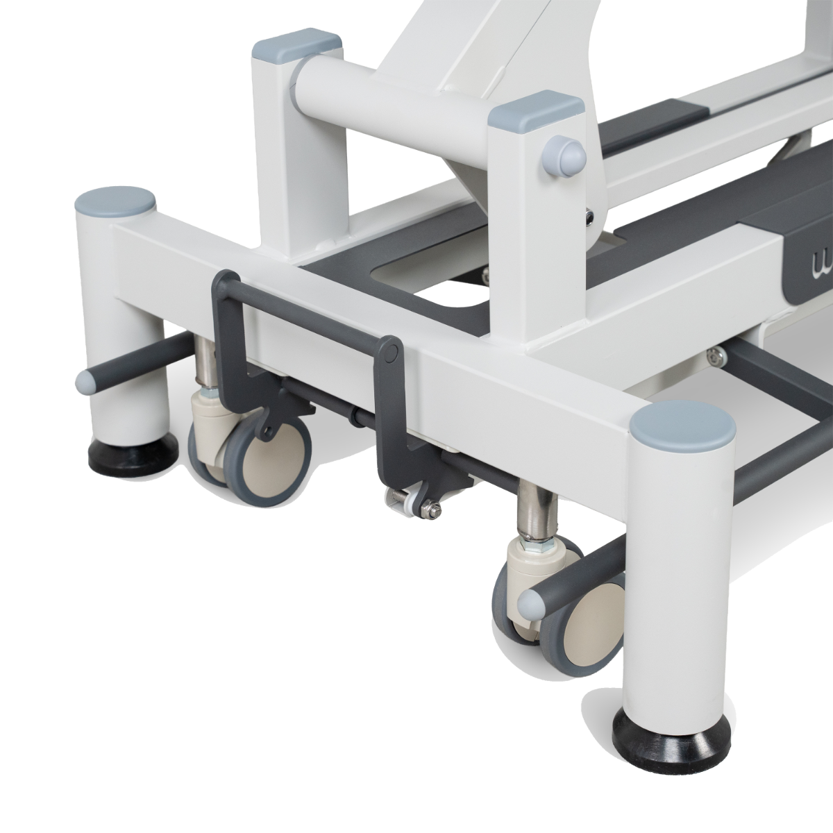 Per facilitare gli spostamenti, questo lettino medico è dotato di 4 ruote girevoli a 360° con sistema di bloccaggio a leva, che garantiscono mobilità e stabilità. Un portarotolo integrato consente di tenere i fogli da visita a portata di mano, ottimizzando l'organizzazione dell'area di trattamento.