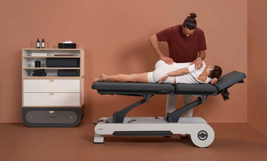 Grazie al sistema di riscaldamento integrato, il lettino N'Run Evo 7 diffonde un calore delicato e uniforme sulla superficie del paziente. Questa caratteristica migliora il rilassamento muscolare, riduce la tensione e favorisce il rilassamento fin dai primi minuti. Di conseguenza, i pazienti beneficiano di un comfort ottimale, favorendo il loro benessere e la loro soddisfazione, che a sua volta contribuisce alla fidelizzazione dei pazienti a lungo termine.