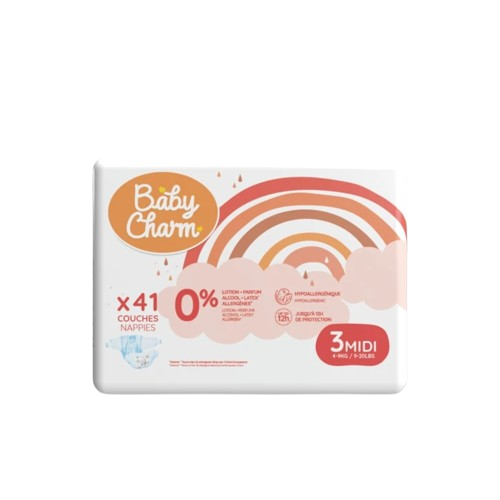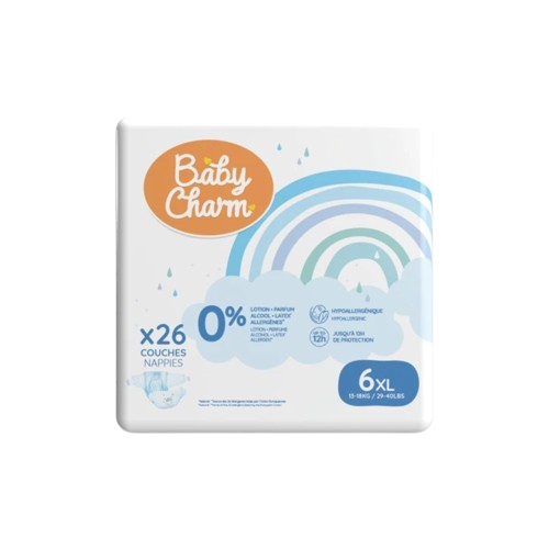 Scoprite i pannolini superassorbenti Baby Charm, progettati per offrire comfort e tranquillità durante tutta la giornata e accompagnare il bambino in ogni fase della sua crescita. Il loro nucleo ultra-fine e altamente assorbente garantisce un assorbimento rapido ed efficace, pur rimanendo discreto sotto i vestiti.