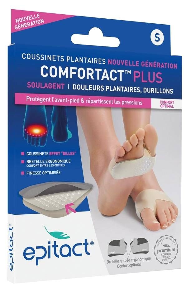 Progettati per fornire un sollievo immediato dal dolore sotto l'avampiede, i cuscinetti plantariEpitact Comfortact Plus migliorano significativamente il comfort quando si cammina e si sta in piedi per lunghi periodi.