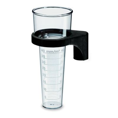 Questo contenitore trasparente a forma di cono è realizzato interamente in plastica ed è dotato di un supporto che consente di posizionare il pluviometro all’aperto su un’asta.