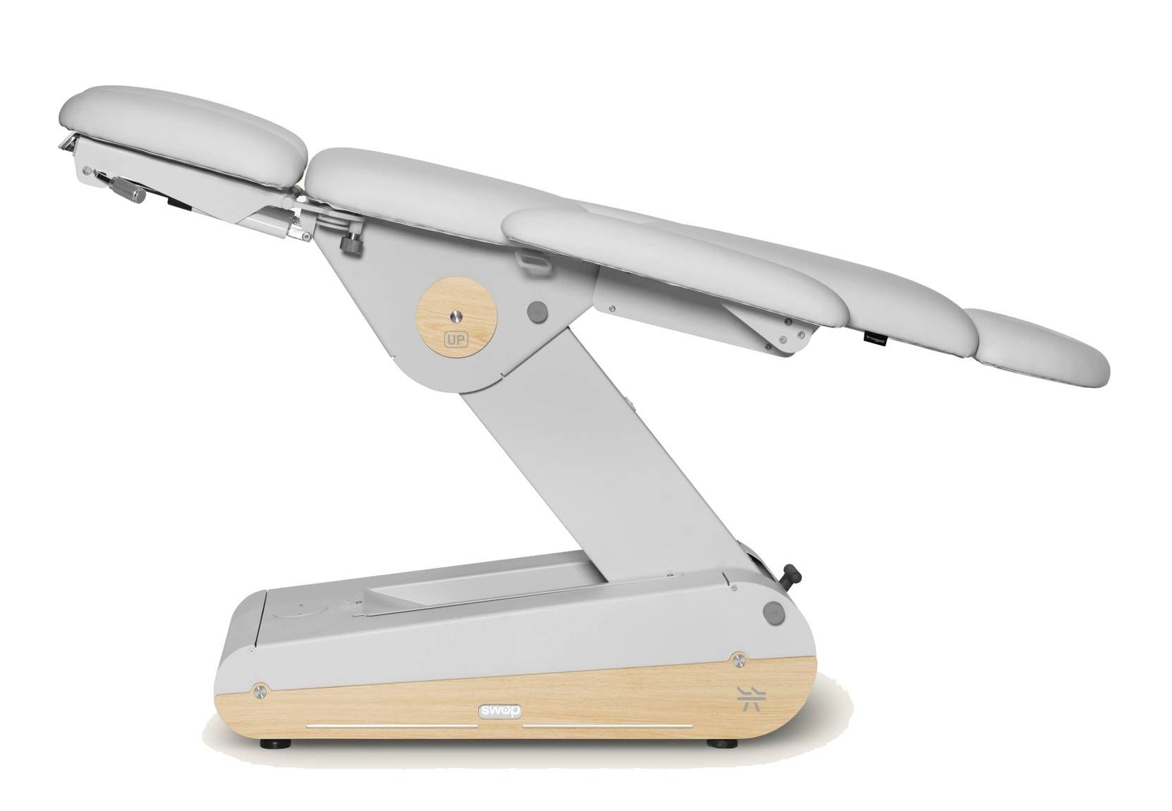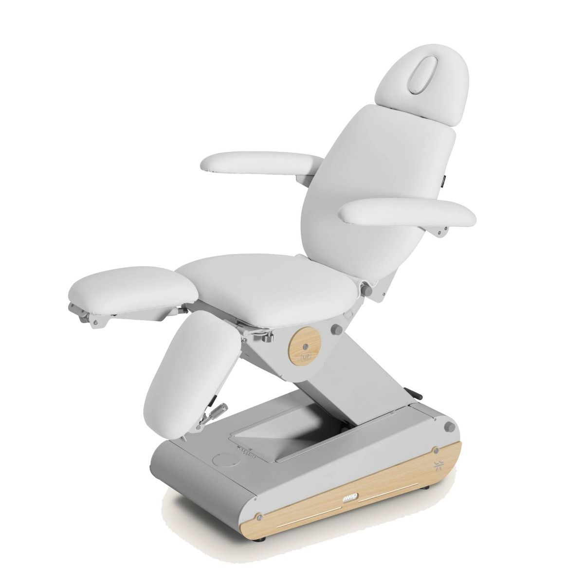 Le numerose configurazioni possibili - multiposizione, funzione tavolo e posizione a gravità zero - rendono Swop P3 UP particolarmente versatile e adatto a un'ampia gamma di procedure podologiche. I poggiagambe estensibili e regolabili si adattano a tutte le forme del corpo, garantendo comfort e accessibilità.