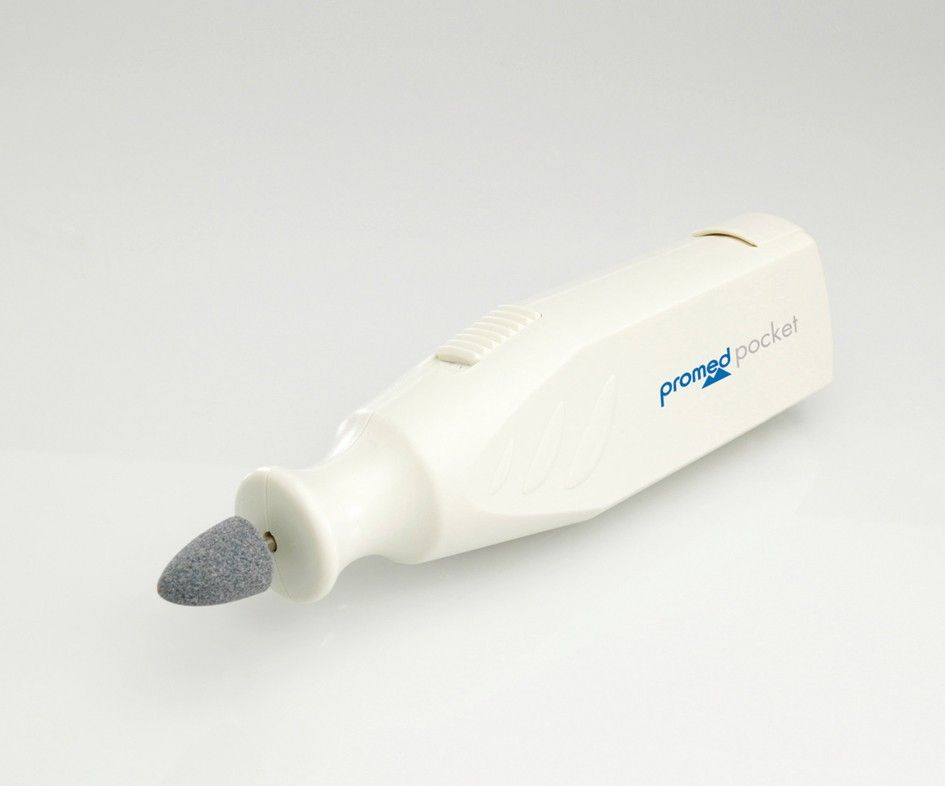 Set Manicure Pedicure Promed Pocket : Ideale per la borsetta o per risolvere piccoli problemi, tagliare unghie, smussare angoli e spigolosità, uniformare la cuticola - Solo 11.5 x 3.5 cm - Rotazione : 6.000 g/min - Pratico astuccio con 3 lime in pietra - Batterie incluse : 2x LR6 - Garanzia : 2 anni