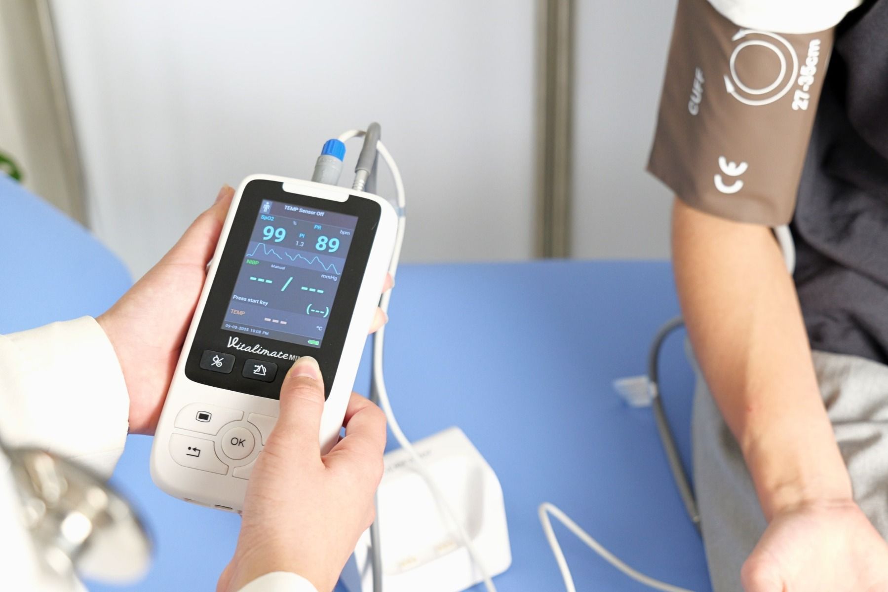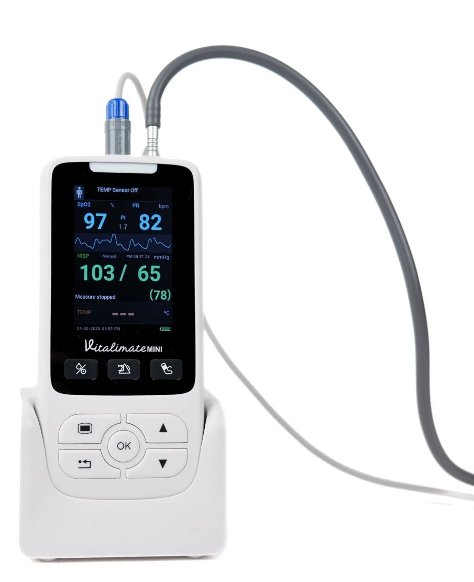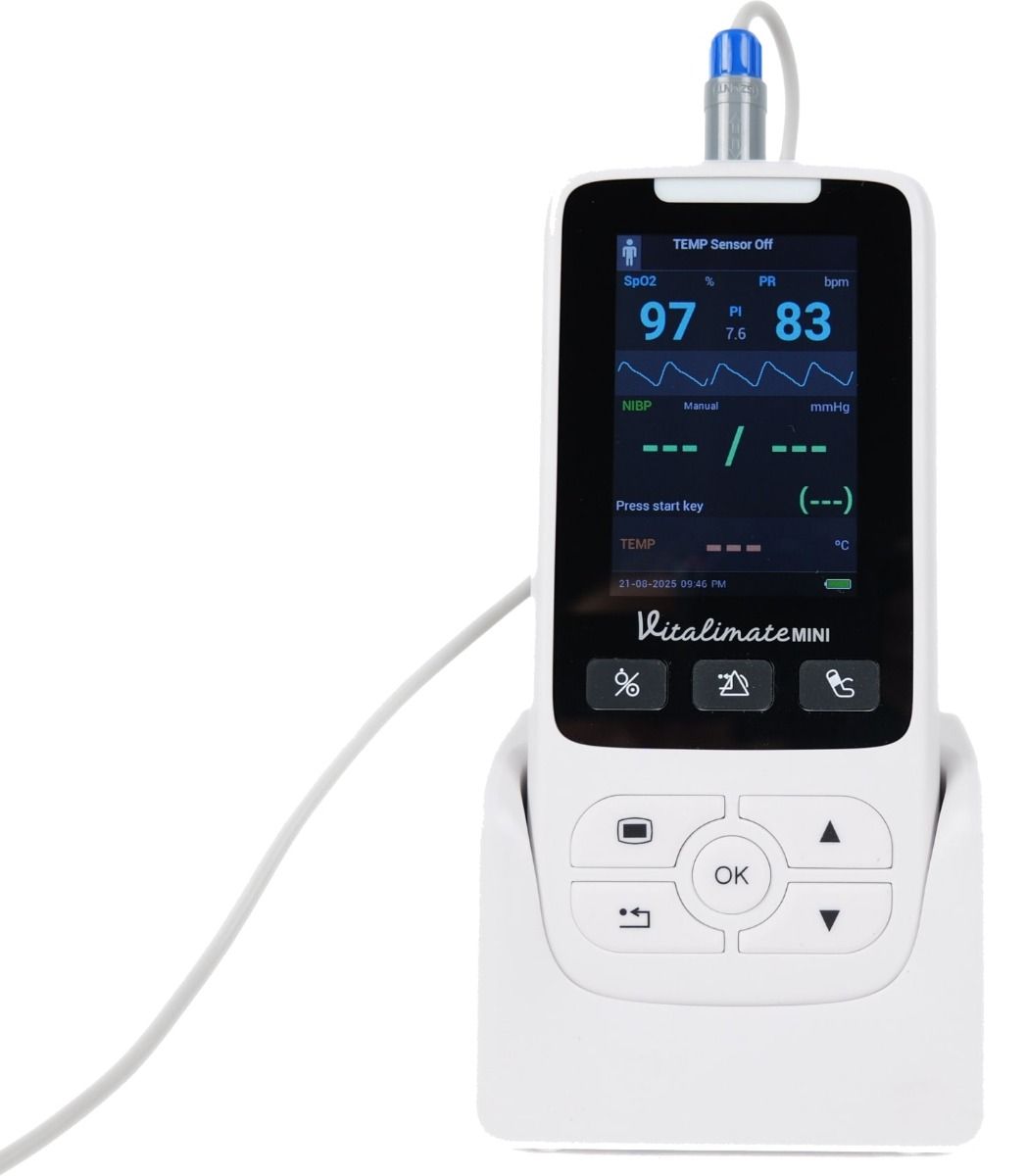 Lo Spengler Vitalimate Mini offre un monitoraggio accurato e veloce dei segni vitali grazie alla sua tecnologia avanzata e alle dimensioni compatte. Questo monitor multiparametrico misura la SpO₂, la frequenza cardiaca e, a seconda della versione, la pressione sanguigna non invasiva (NIBP), soddisfacendo le esigenze di chiunque cerchi uno strumento affidabile, portatile e facile da usare.