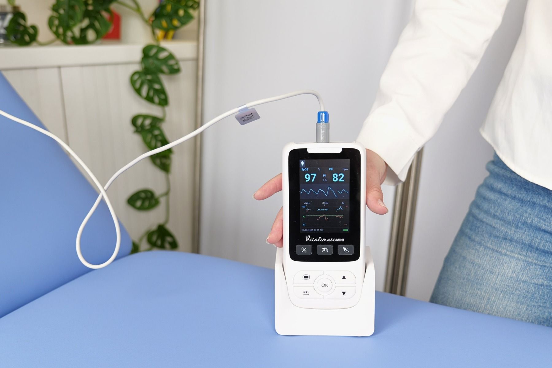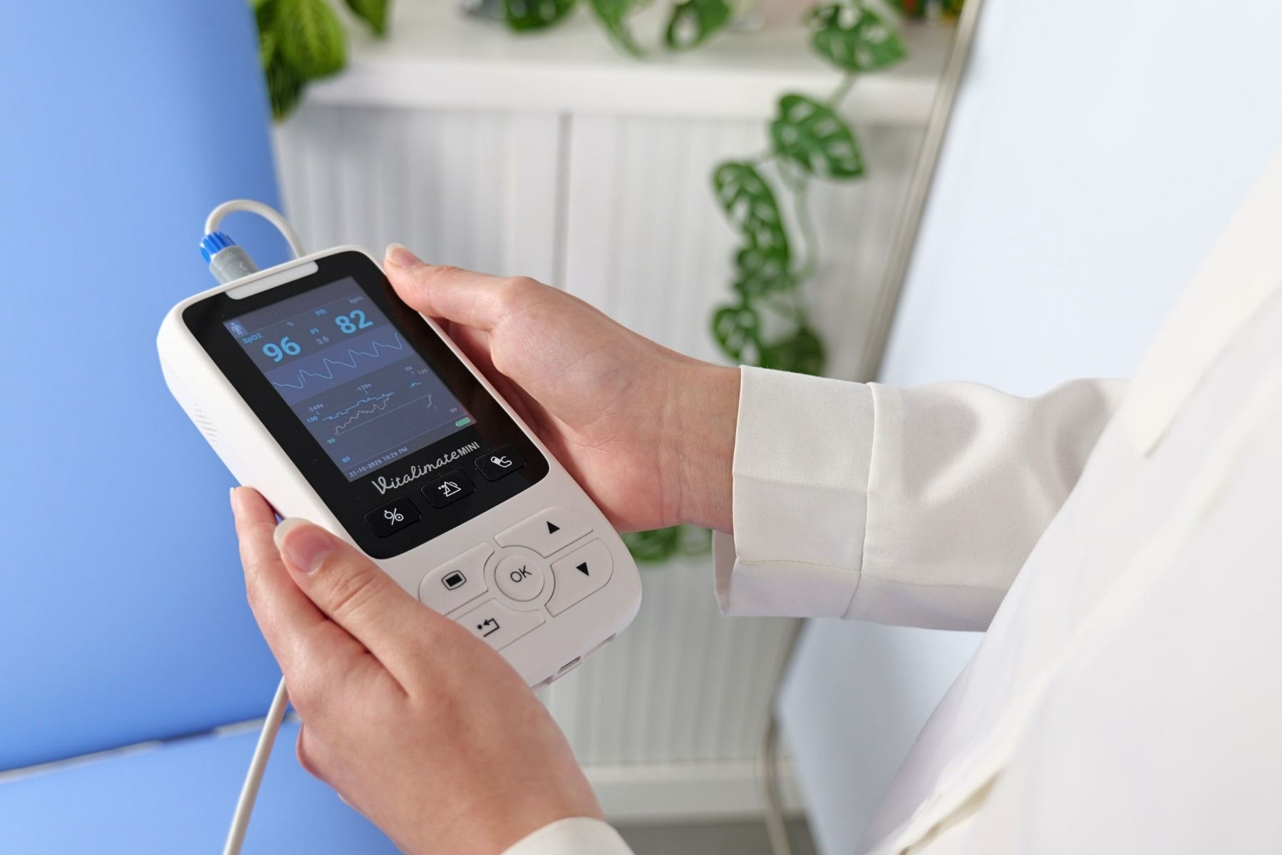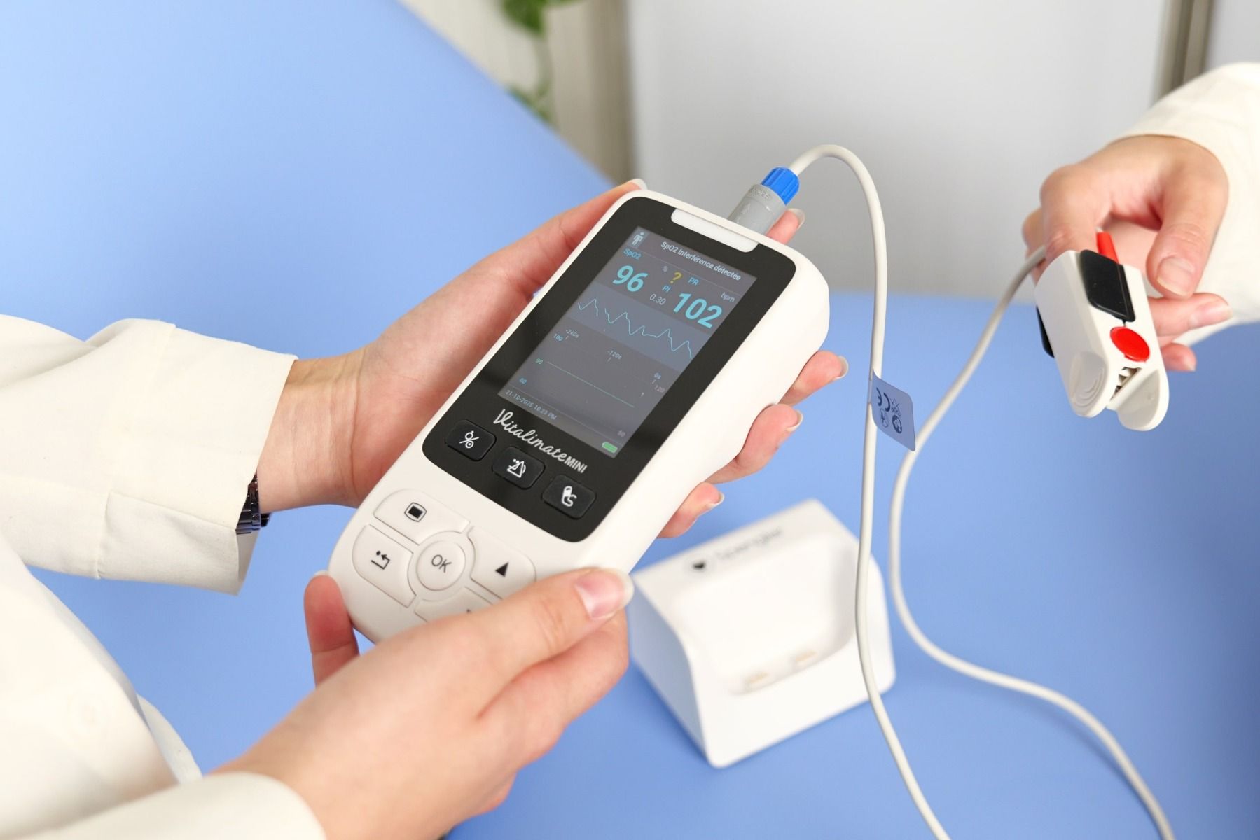 Con un peso di soli 280 g e una base a doppia funzione che combina ricarica e parcheggio, Vitalimate Mini unisce mobilità e autonomia. Fornisce fino a 12 ore di uso continuo e fino a 24 ore in modalità stazionaria, rendendolo ideale per lunghi turni di guardia o interventi a domicilio.