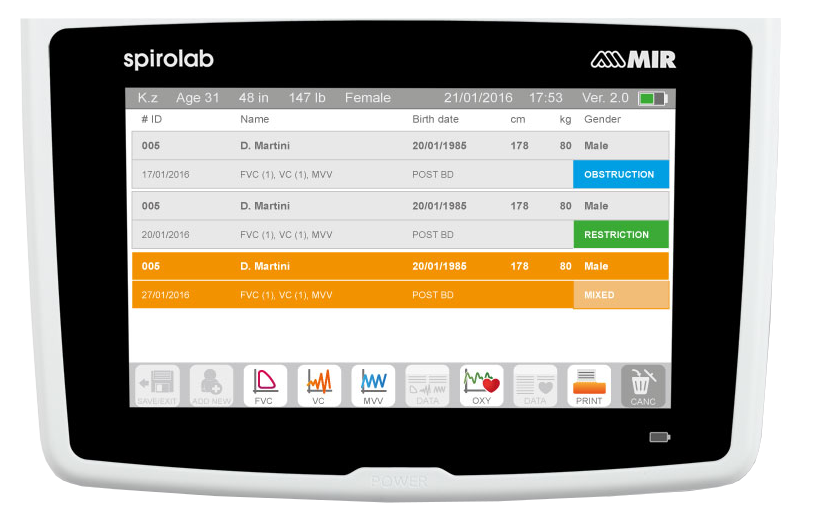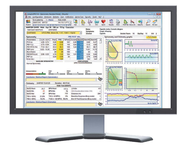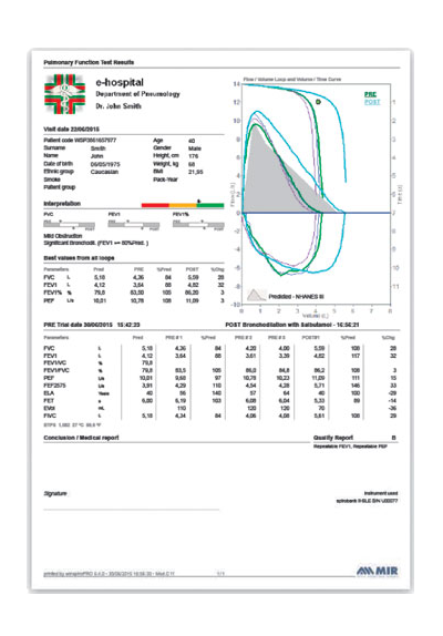 - Confronto di FVC , VC , MVV , PRE / POST broncodilatatori con un'ampia gamma di parametri selezionabili