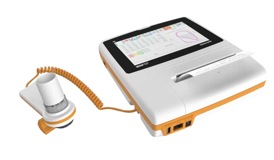 Dotato di un ampio touch screen a colori ad alta risoluzione, lo spirometro visualizza le curve flusso-volume e volume-tempo in tempo reale, rendendo i risultati di facile lettura e interpretazione immediata. Supporta i principali parametri respiratori come FVC, CV con profilo ventilatorio e MVV, in conformità alle raccomandazioni ATS/ERS, garantendo misurazioni standardizzate e riproducibili.