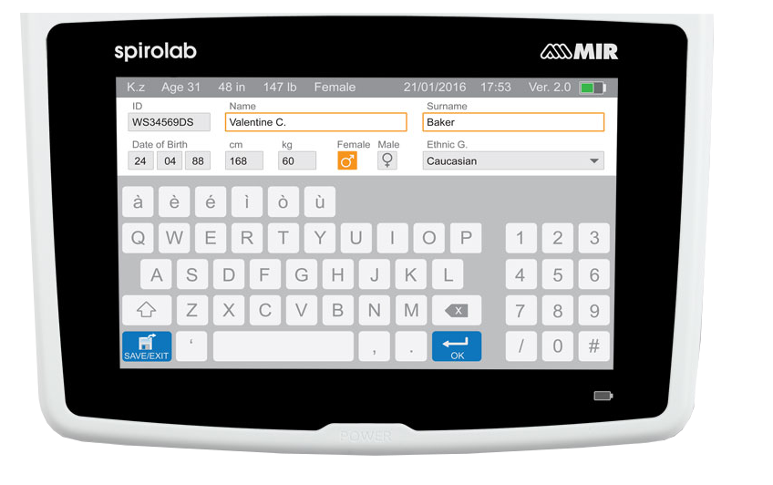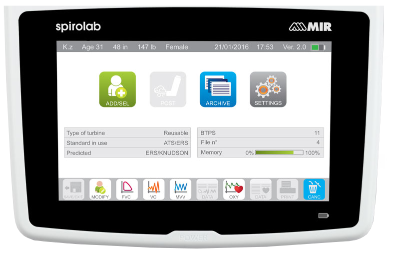 Caratteristiche dello spirometro diagnostico - Spirolab 7" con touch screen e software