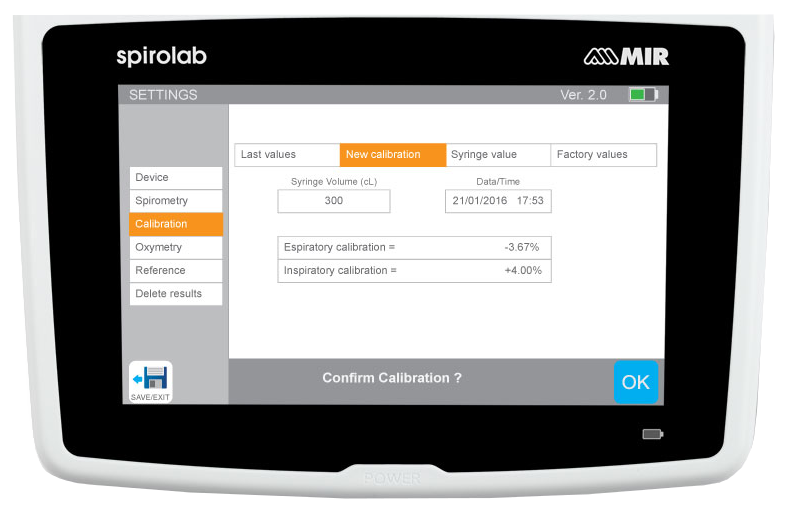 - Parametri spirometrici: FVC, FEV1, FEV1 / FVC, FEV1 / VC, PEF, FEF25, FEF50, FEF75, DEM25-75, FEF75-85, età polmonare, volume estrapolato, FET, tempo PEF, FEV0,5, EV0,5 / FVC, FEV0,75, FEV0,75 / fvc, fev2.75 / FVC, FEV2, FEV2 / FVC, VEM3, VEM3 / FVC, FEV6, FEV1 / FEV6, FEV1 / PEF, FEV1 / FEV0.5, FIVC, FIV1, FIV1 / FIVC, PIF, FIF25, FIF50, FIF75, FEF50 / FIF50, VC, IVC, IC, ERV, IRV, Rf, VE, VT, tI, tE, VT / tI, tE / Ttot, MVV (misurato), MVV (calcolato).