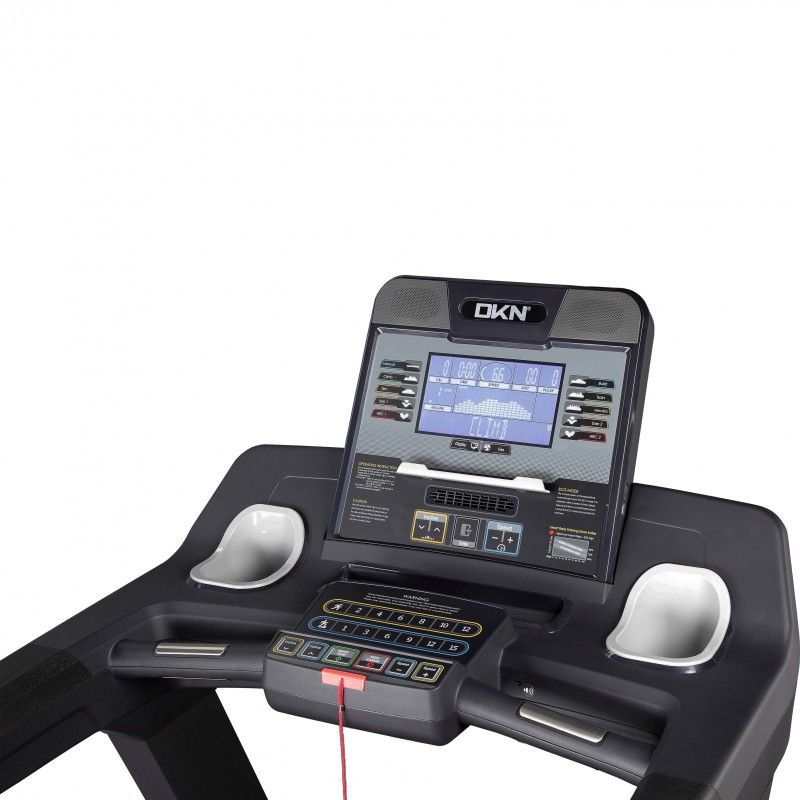 La struttura del Flex-Deck fornisce supporto e una posizione efficace del piede, riducendo il dolore articolare e muscolare a livello di ginocchio e piede. Grazie alla costruzione della piattaforma DKN, ottieni il massimo assorbimento delle onde d'urto nella parte anteriore, dove ne hai bisogno, dove il piede tocca il tappeto. Equipaggiato con una console di controllo, il display LCD del tapis roulant T-775 mostra i dati essenziali per il regolare svolgimento della sessione: velocità, distanza, durata dell'allenamento, dispendio calorico, grasso corporeo, inclinazione e polso per seguire la tua esibizione.