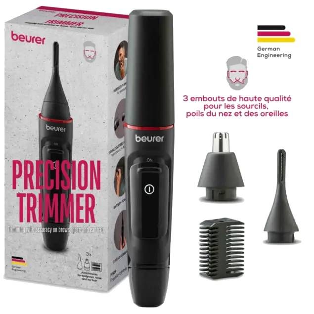 Il rifinitore di precisione Beurer MN3X è lo strumento ideale per rifinire e modellare le sopracciglia, i peli del naso e delle orecchie con precisione professionale. Dotato di tre accessori in acciaio inossidabile di alta qualità, offre uno styling perfetto e una finitura pulita, garantendo al contempo un comfort ottimale per la pelle.
